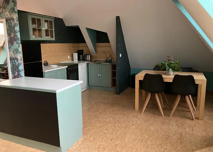 Pyramide Haus 51,8 Appartement bevindt zich binnen 6 minuten loopafstand van het Vogelpark am Krater en heeft uitzicht op de tuin. Het Kurpark Bad Nenndorf is binnen slechts 10 loopminuten verderop en de Stolperstein voor Ernst Blumenberg is gelegen op loopafstand van dit appartement van 45 m^2.